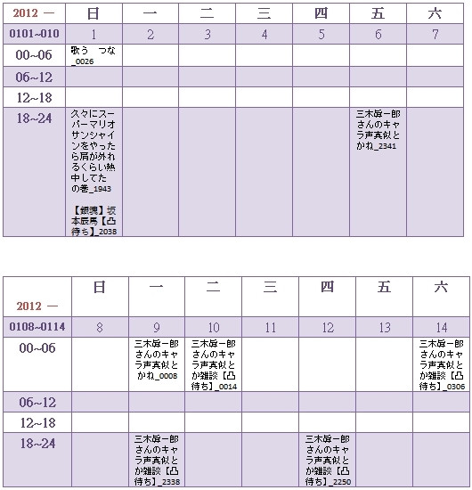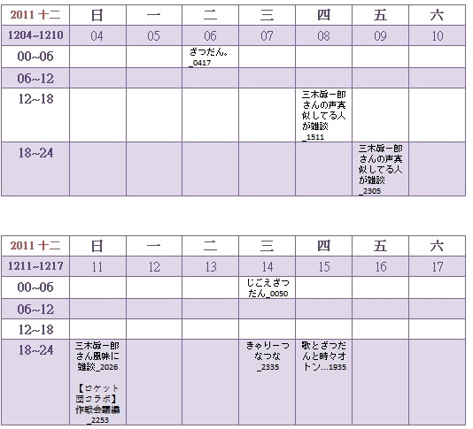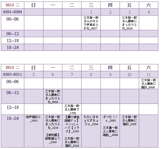 本來就有點想把手邊的錄音檔整理出個書面記錄,前幾天又看到有人問ツナカン一般生放送的時間帶,就乾脆列表格整理一下。