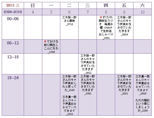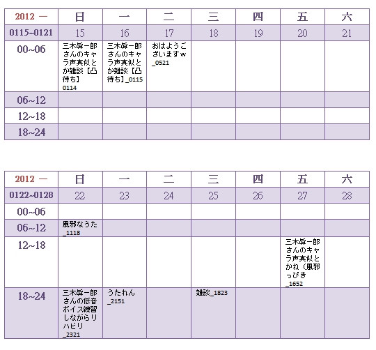如題,本篇內容為ツナカン(NICO上一位進行三木眞一郎さん声真似的生放送主)從去年12月初以來的放送記錄。w