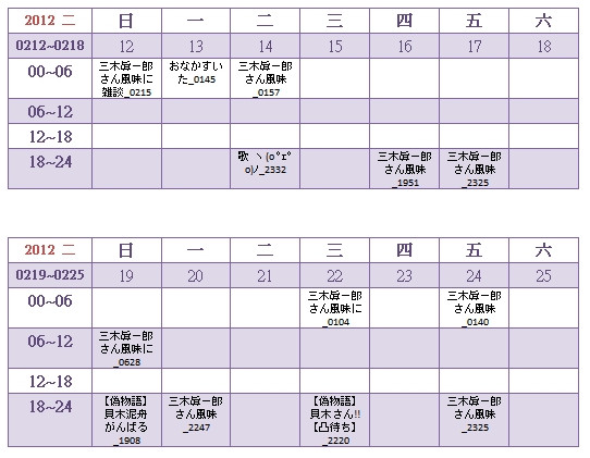 大概就這樣了・・・・・・其實有點在考慮要不要把高峰時段(?)的「夜」時間帶再對分成「夜」和「深夜」。