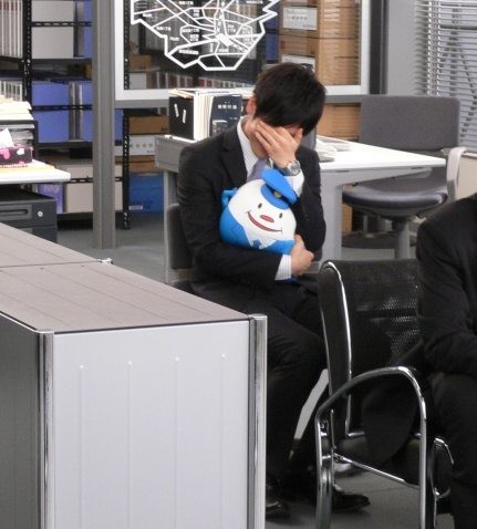 「喔哇・・・就這樣把臉埋進永作博美的胸前啊!雖然說永作桑是也沒什麼胸部可言啦,不過,是永作博美耶・・・嗚哇~這麼用力啊・・・・・・|||雖然說大家都是演員,但拍這幕不知道會不會很尷尬・・・・・・」總之,看到安積班II第五話那段時,瞬間感受到多次表示「想要戀愛SENCE!」的佐佐木桑內心的哀傷・・・・・・(大誤)第五話中飾演日文教師的古田新太桑,據說因為和克拉拉同樣是舞台出身的演員所以感情很好。排演時的古田桑,其實現在是金毛喔,劇中是戴假髮。泰國人孫策在看守所時唱的泰文歌,雖然有準備歌詞卡,但是即使看著也看不懂上面究竟是寫些什麼。於是,拿到歌詞卡的古田桑・・・開始自己編歌詞來唱。跟進的克拉拉。由佐佐木先生那個坐姿的放鬆度來看,兩人應該真的相處得不錯啊。最後。把第六話中出現的一張社長的椅子