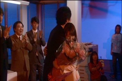 因為是女優吧,所以藏桑本來沒有要抱的意思,沒想到安桑居然自動抱上去了。(囧)還抱那麼緊啊・・・・・・現場一片男士們的羨慕怪叫,我也好羨慕啊!羨慕安惠美桑,當然。不過看藏桑好像也很樂的樣子,就不跟她計較了。(?)涉谷飛鳥桑。在滿頭大汗的動作戲後殺青的賀集桑。藏桑可能是沒趕上獻花就獻擁抱吧。(笑)附帶一提,當時藏桑穿的是安積班的T恤跟外套喔!中村桑。山口桑。藏桑本人的殺青。STAFF獻花,由中村桑負責擁抱XD