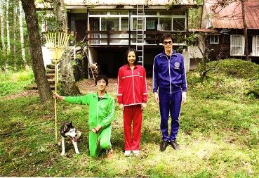 戲中飾演父女的兩人在藏桑整裝時一邊閒聊。藏桑稱讚涉谷飛鳥桑飾演的涼子是個很可愛的女兒。「咦,你是說真的嗎~?」「當然是真的啊・・・」「女兒太可愛,(以後)都捨不得(讓妳)嫁出去了呢。」「・・・好害羞,我要跑走了」 然後涉谷桑就跑走了。 (囧)--要是有這款爸爸,當然不要嫁出去,留著父嫁才是正解啊!(喂)然後是格鬥技系列。拍戲之餘,一群男人研究起了格鬥技。首先示範的是年輕時參加過比賽得過獎的佐佐木克拉拉先生:因為他的動作太快,格放還是抓不太到||| (那腳踢得好高!)