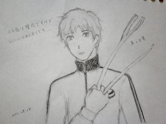 現在回想起來實在該用左手才對的,身為右撇子為了畫手一直反覆拿筆→夾東西觀察→拿筆→夾東西觀察・・・實在很麻煩,要是用左手就可以看著畫了嘛・・・・・・而且後來才發現運動服的MARK也在那位置,全擠在一起了 Orz|||